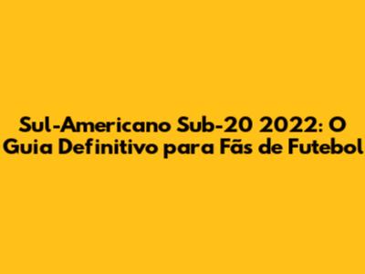 Sul-Americano Sub-20 2022: Guia Completo E Jogos